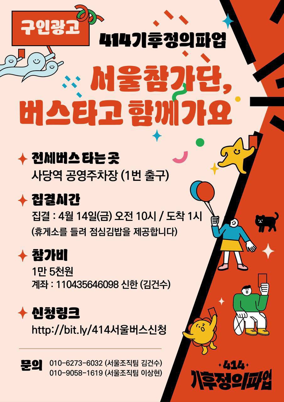 * 참가신청은 http://bit.ly/414서울버스신청 으로 신청하시면 됩니다 김밥제공합니다